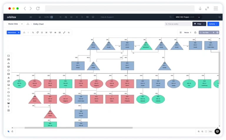 The Orbitax Entity Designer is your solution for simplifying the visualization process. Our tool helps you create comprehensive and customized organizational charts, ensuring that your entity data is always up-to-date and ready for any reporting or compliance requirement.